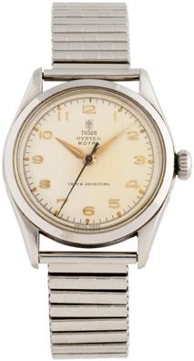 Dial: white with black Roman numerals, black inner minute track with five minute markers, blued steel sword hands