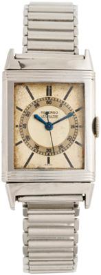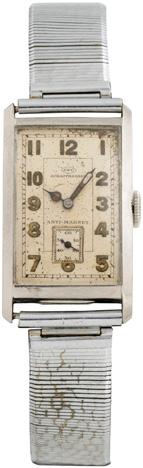 Case: brushed and polished rounded rectangular case with back secured by 4 screws, stepped bezel, cabochon set crown, no. 780850504