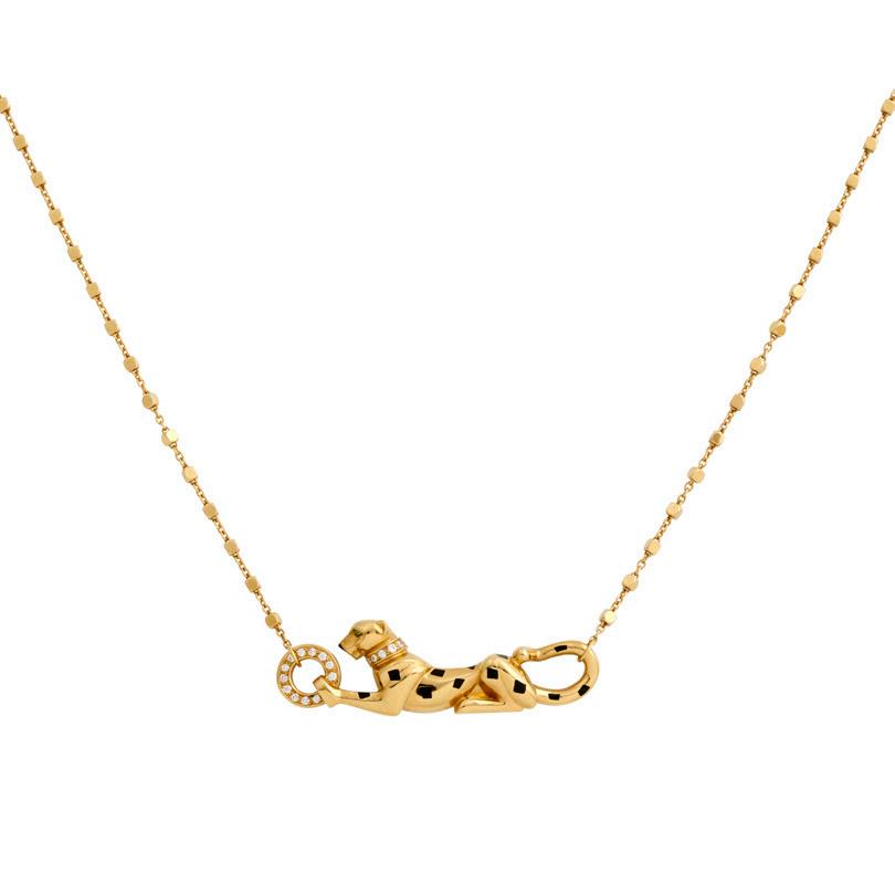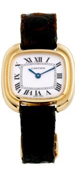 Closure: Cartier black leather stap and 18ct gold deployant clasp