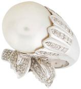 9CT WHITE GOLD, DIAMOND AND PEARL NECKLACE