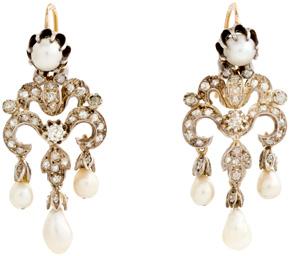 Each comprising four tiered, curved ribbon scrolls of claw-set round brilliant-cut diamonds to a post and clip, the diamonds together weighing approximately 8.75 carats, length approximately 42mm, width approximately 78mm, gross weight approximately 15.9 grams.