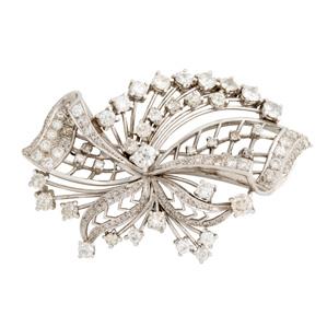 14CT WHITE GOLD AND DIAMOND BAR-BROOCH