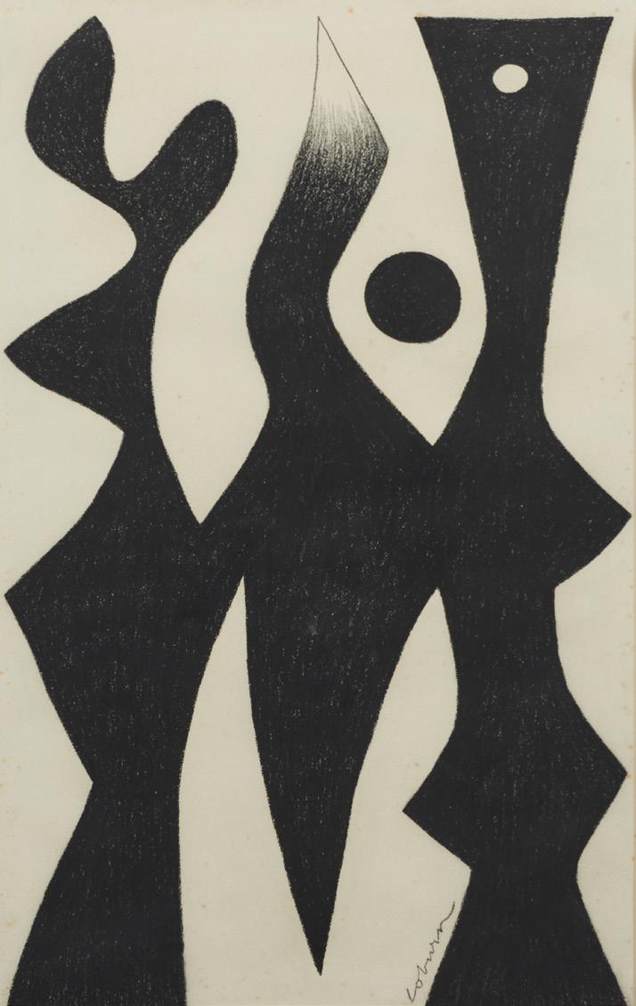 Totemic Figures pastel on paper signed lower right: Coburn 101 x 64cm