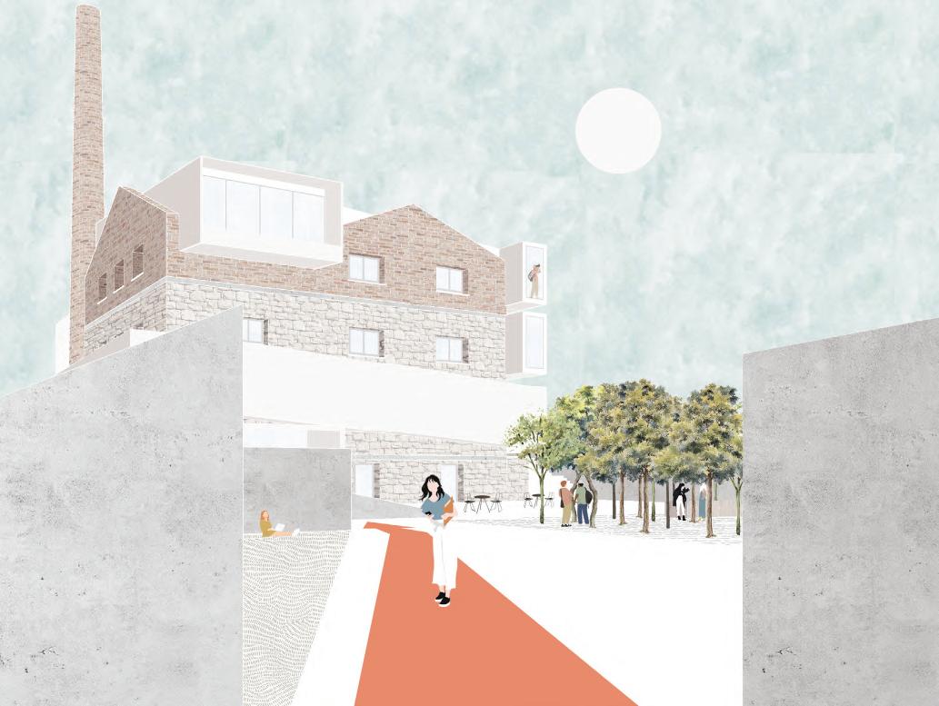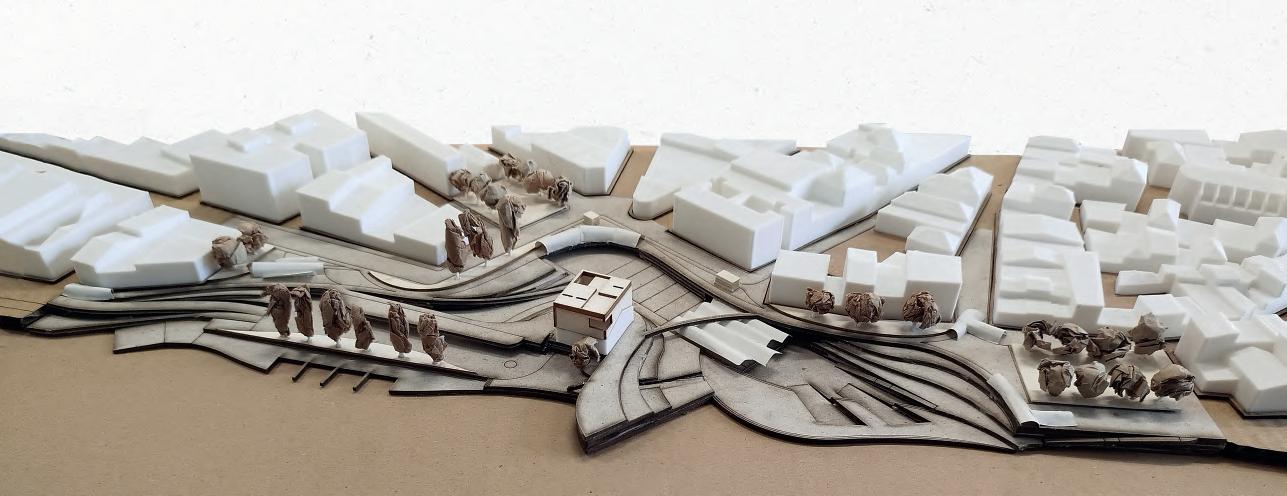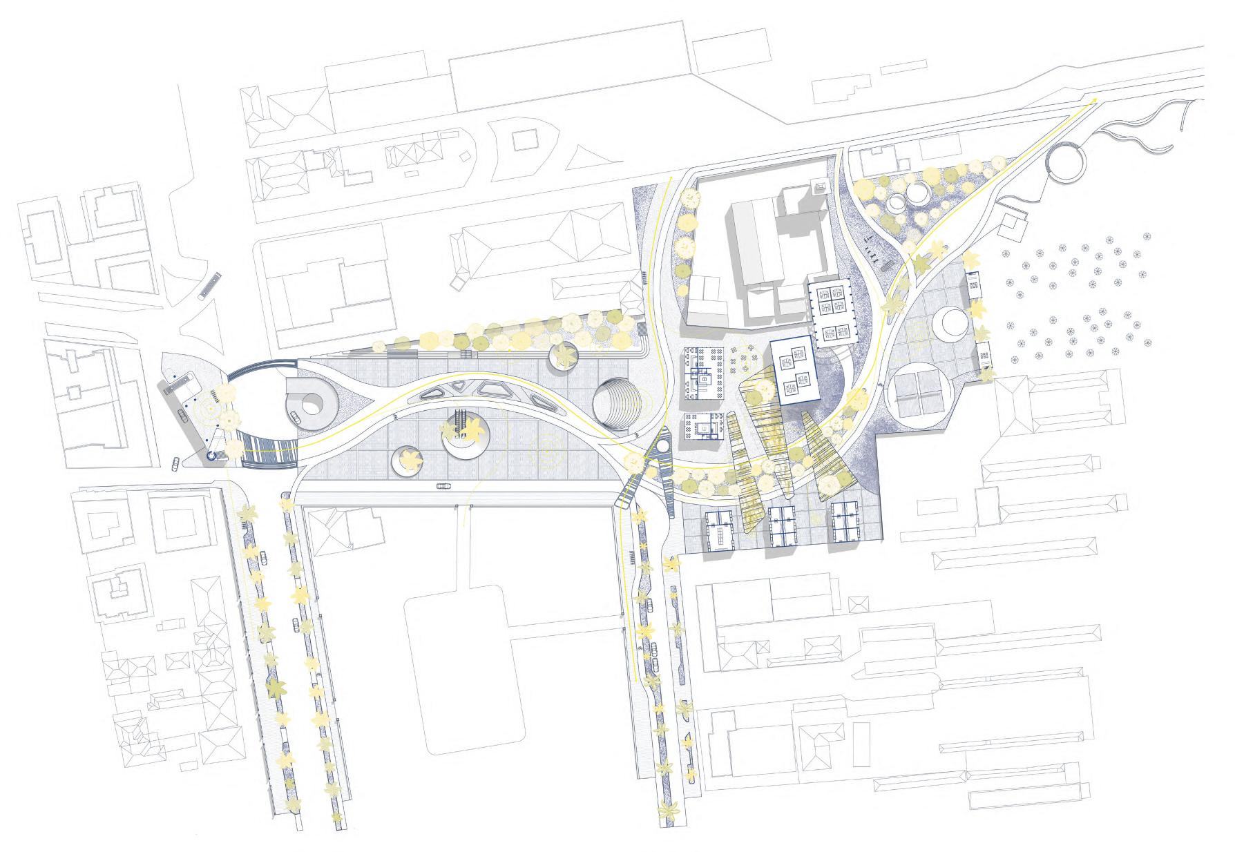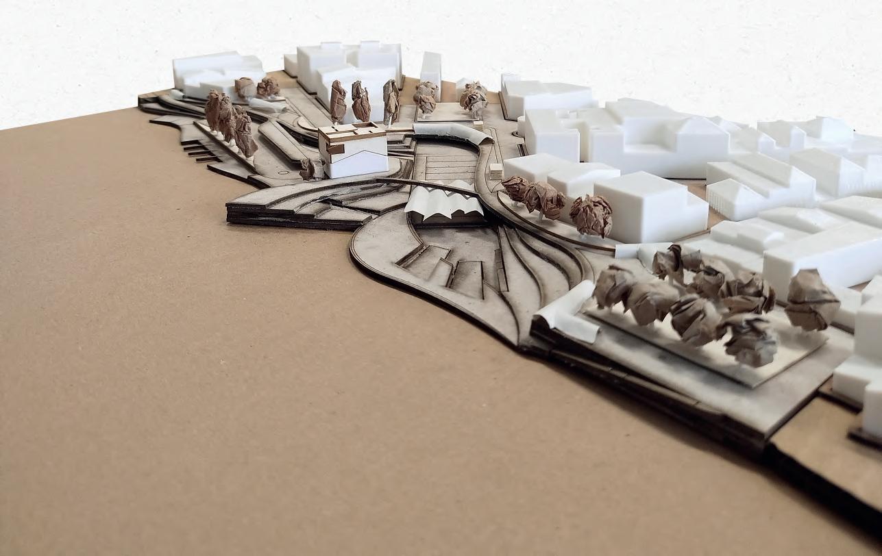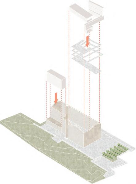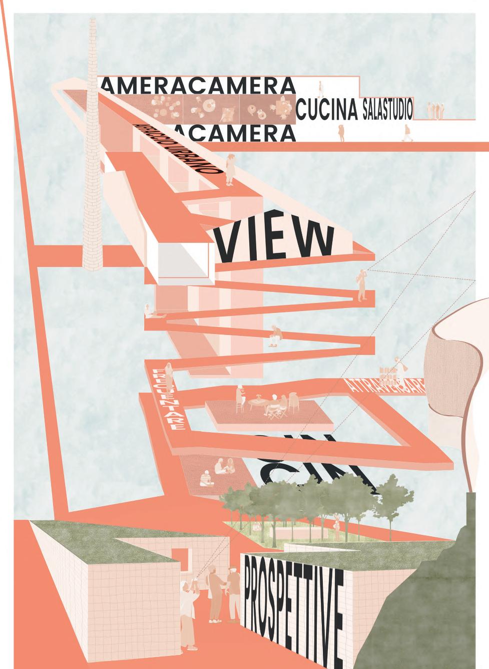 Lo spazio pubblico si dispiega in una danza di rampe terrazzate, fluide e versatili, che escono ed entrano nel nucelo storico, accogliendo il movimento delle persone e trasformandosi in un palcoscenico per attività e momenti di incontro. Ogni livello, permeabile e aperto, racconta una storia di condivisione e scoperta, dove il cammino diventa esperienza.