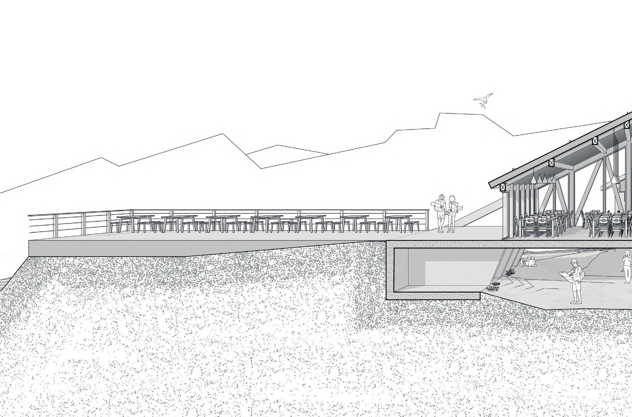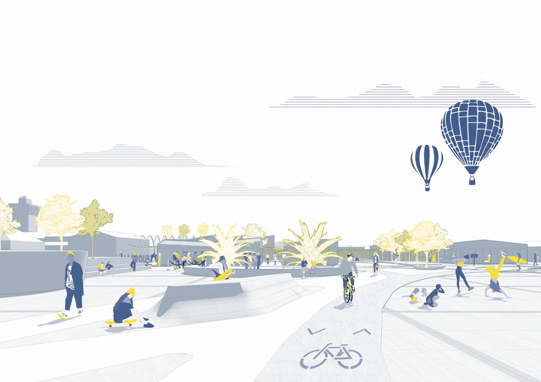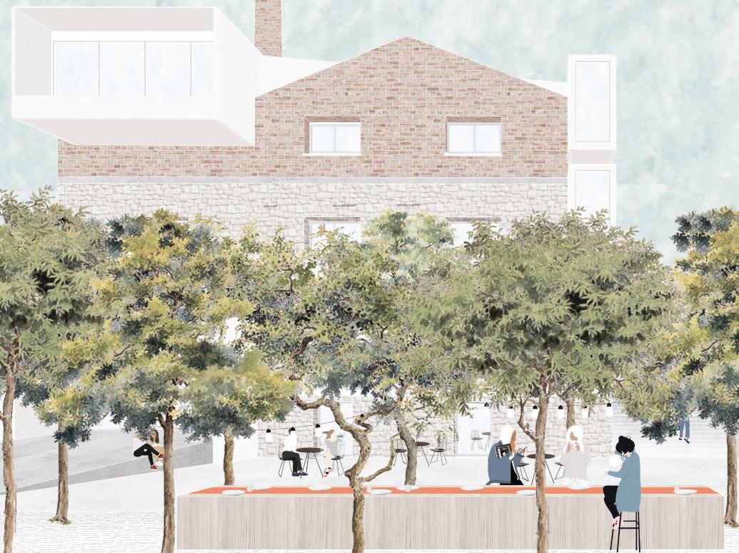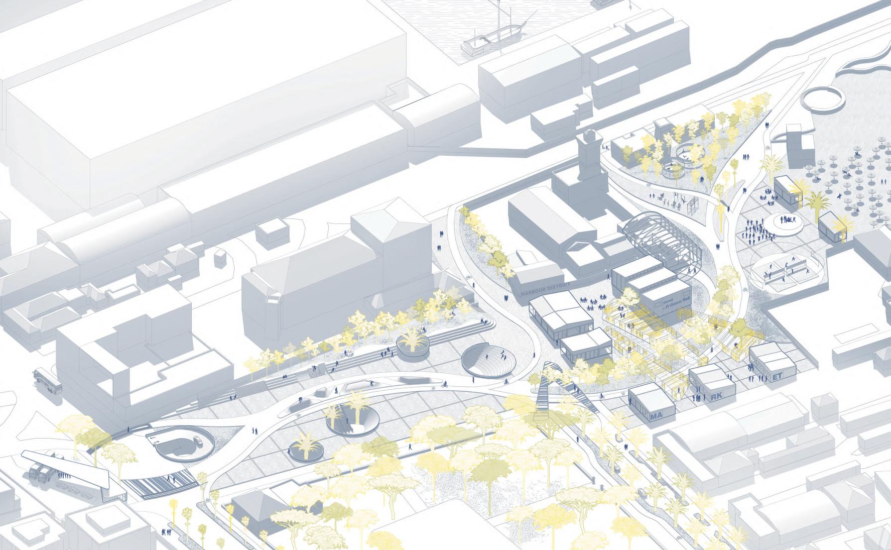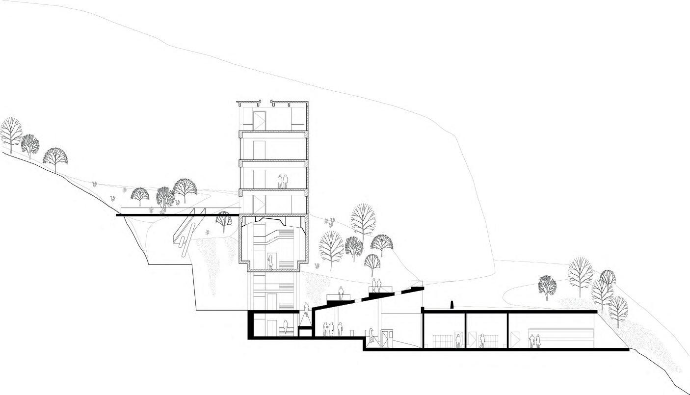Lo spazio pubblico si dispiega in una danza di rampe terrazzate, fluide e versatili, che escono ed entrano nel nucelo storico, accogliendo il movimento delle persone e trasformandosi in un palcoscenico per attività e momenti di incontro. Ogni livello, permeabile e aperto, racconta una storia di condivisione e scoperta, dove il cammino diventa esperienza.