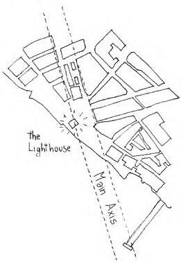 This outcrop becomes the focal point of the composition, a symbolic space for an ideal lighthouse.