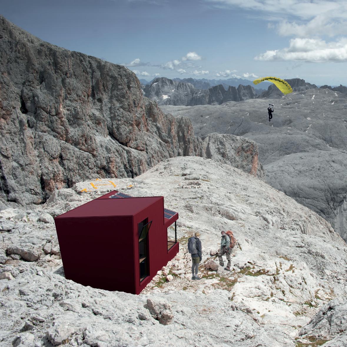 Designing of three Alpine shelter in the iconic location of Pale of San Martino