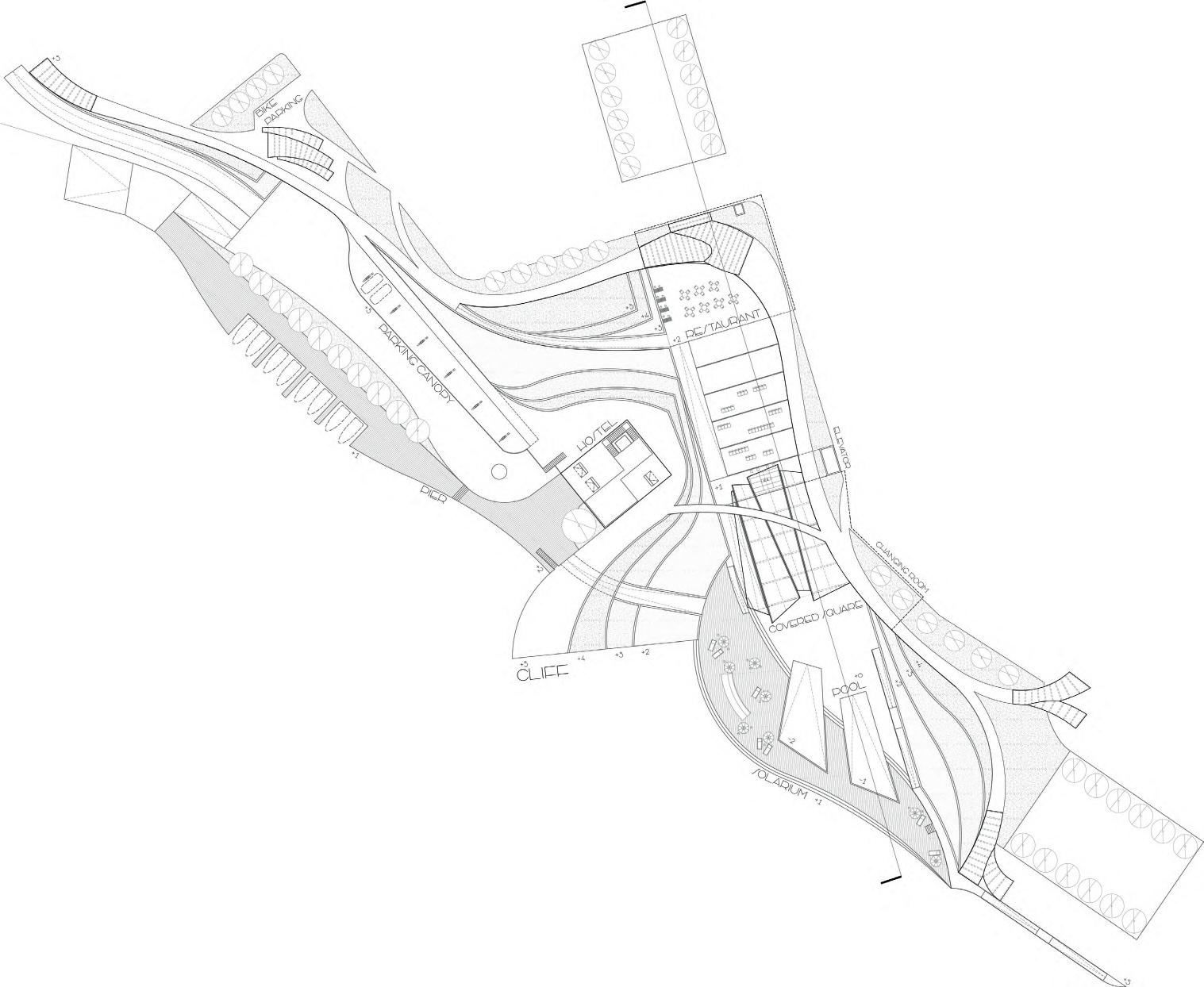 Here, the new Amposta hostel emerges as an essential and pure volume, rising above the current bar. This central heart divides two main spaces: the solarium with its pools of river water and the new covered square from to the small pier for boats.