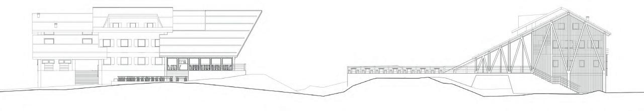Dalla lettura delle dinamiche nasce la volontà di definire il nuovo ingombro attraverso una grande falda capace di generare spazio, come una tenda calata e ancorata sui puntoni.
