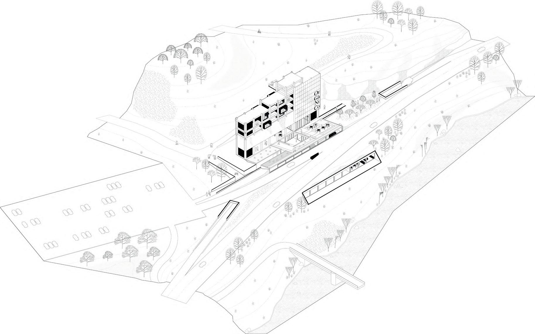 A central element of this project is water, a vital and essential resource. It becomes the protagonist in a carefully designed pathway, featuring a collection system that involves the entire slope and a purification process that prepares the water before it flows back into the Oria river. Throughout its journey, the water releases a unique sensory dimension, engaging the senses and creating a deep connection between the built environment and nature.