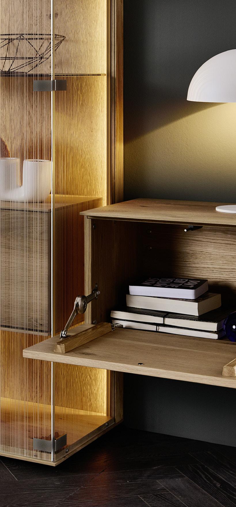 Die harmonische Kombination aus stark strukturiertem Naturholz und satiniertem Glas schafft eine faszinierende Basis für Möbelstücke, die sowohl einzigartig als auch vielseitig einsetzbar sind. Die hochwertig verarbeiteten Highboards, Sideboards oder Hängevitrinen der neuen LINEA-Kollektion setzen Ihre Lieblingsstücke und Alltagsbegleiter von der Vase bis zum Weinglas gekonnt in Szene. Somit verwandelt sich jeder Ort in einen kleinen Ausstellungsraum mit Wohlfühlambiente.