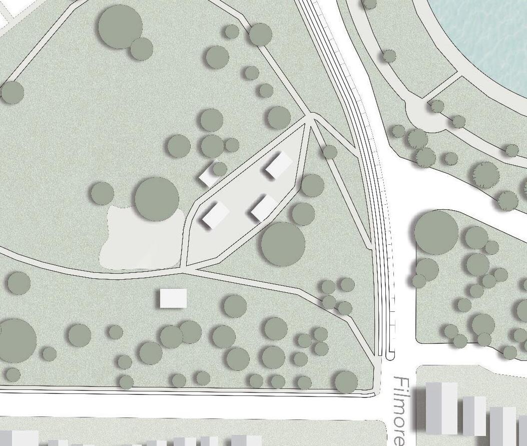 The map displays that the site is cutted by the Kensington Expressway. It creates loud noise at the museum’s west entrance and isolates it from homes and parks on the west side of the road.