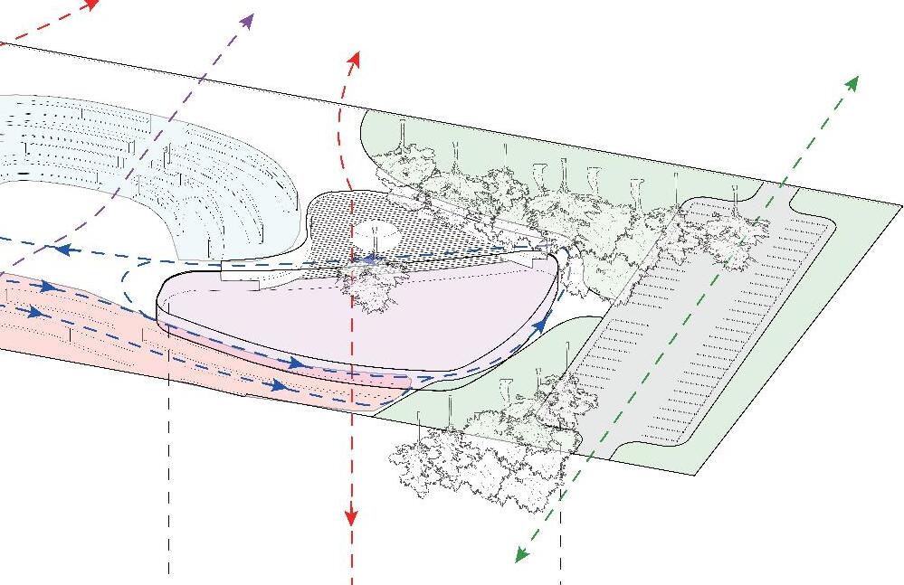 The design looks to establish this connection between the three families by suggested organic pathways in the negative space of the site.