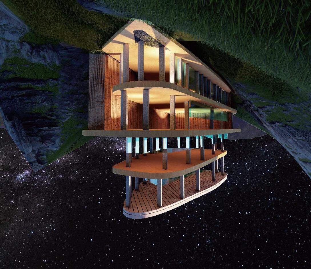 Explode digram shows the concept of inhabitating wall and the inside of the space.