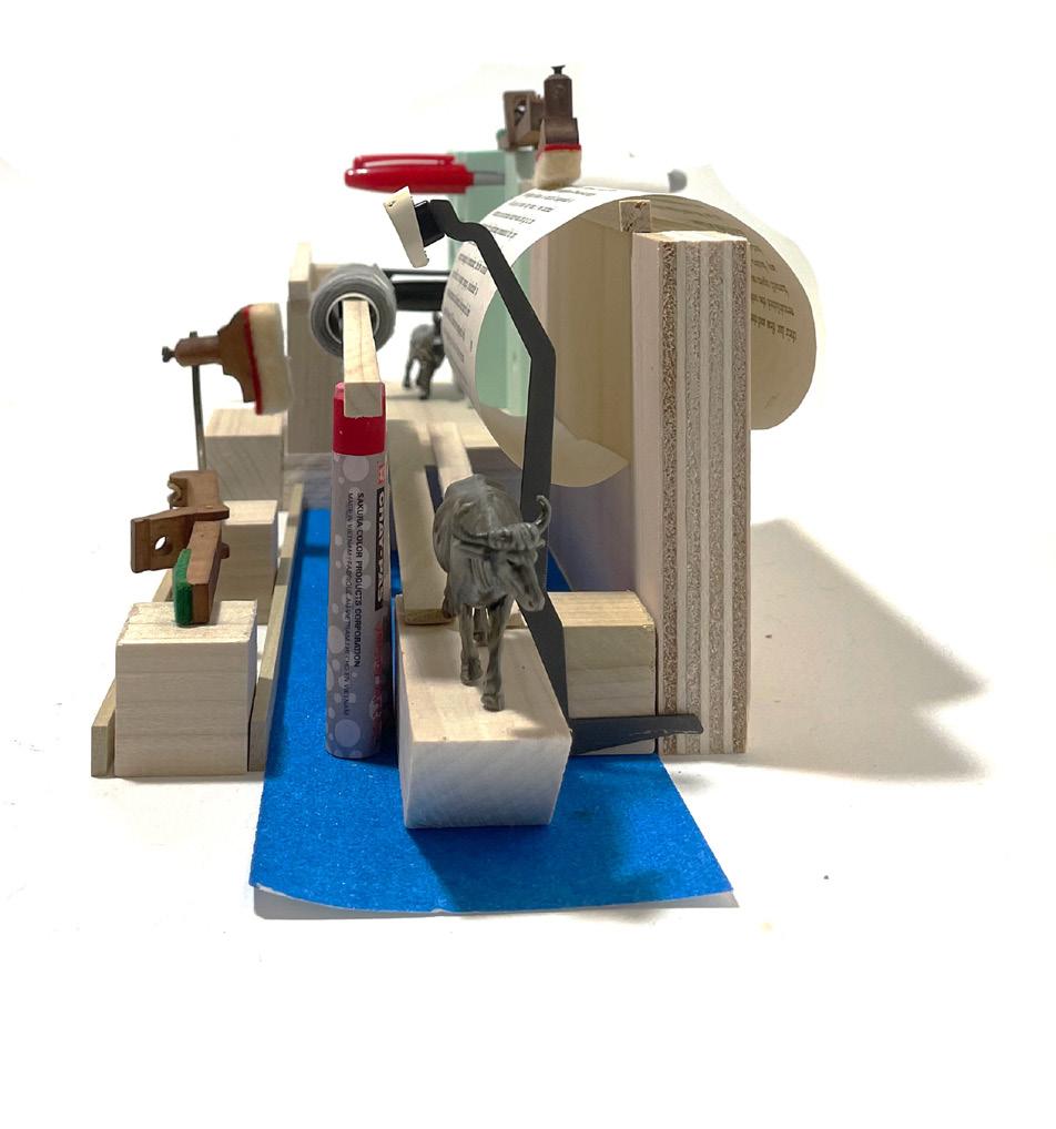 Figure 1. Physical mockup of the Machine for Reincarnation, conceptualized using materials from a mystery box.