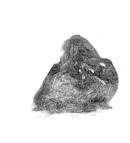 Hair fibers moulded to exhibit a sculptural or organic quality.