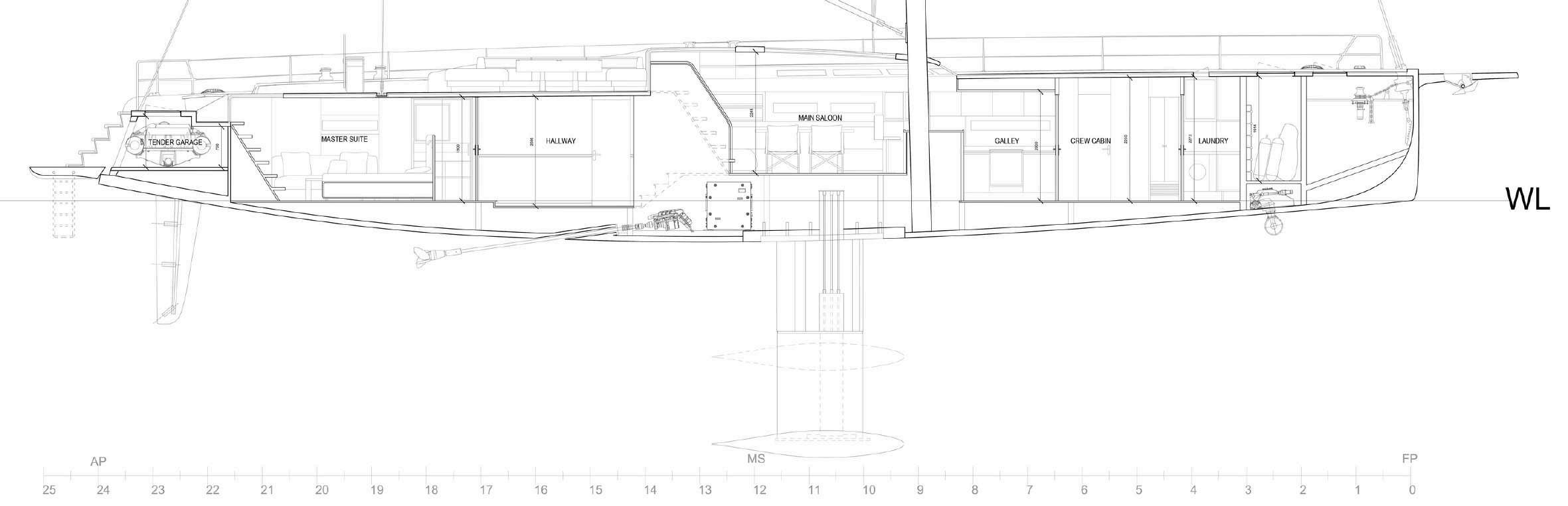 INVOLVED IN TECHNICAL ASPECTS OF THE PROJECT (GA, SECTIONS, HULL LINES, AND OTHERS) AND INTERIOR DESIGN/RENDERING