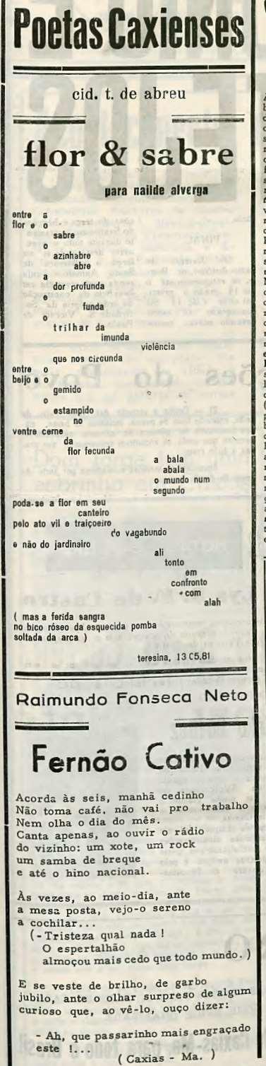 13 BORGES, Celso; HAICKEL, Joaquim. (organizadores). ANTOLOGIA GUARNICÊ, ano I. São Luis: Guarnicê, 1984. Publicadas no Suplemento e na revista Guarnicê de agosto de 83 a julho de 84.