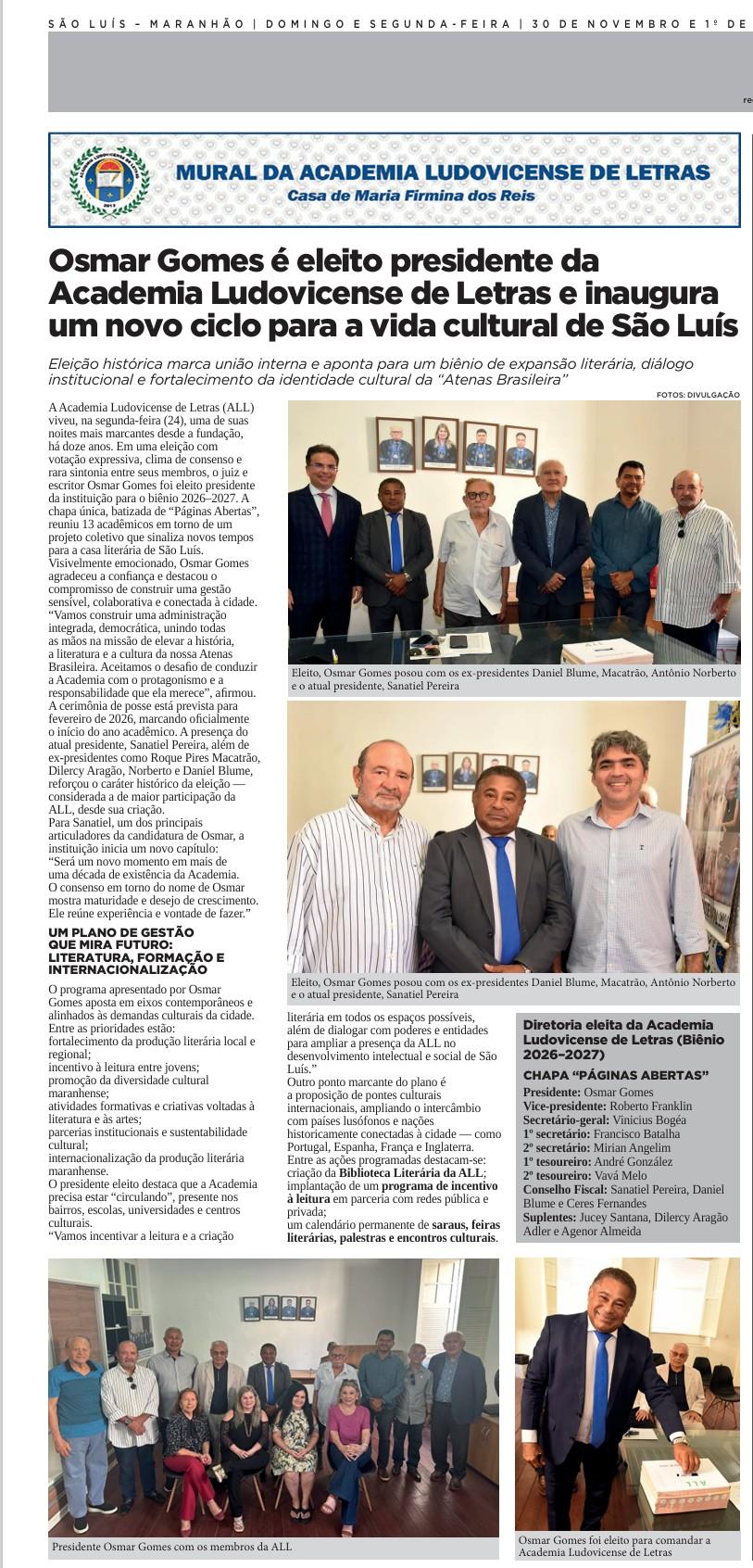 JUIZ OSMAR GOMES É ELEITO NOVO PRESIDENTE DA ACADEMIA LUDOVICENSE DE LETRAS