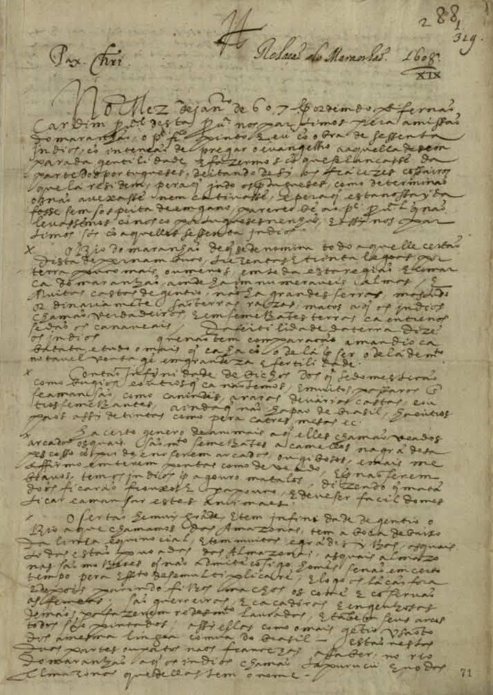 Fonte: “Relação do Maranhão” do Padre Luís Figueira, ano de 1608. Archivum Romanum Societatis Iesu, em Roma sob registro - ARSI, Bras. 8 I ff. 71-84v.