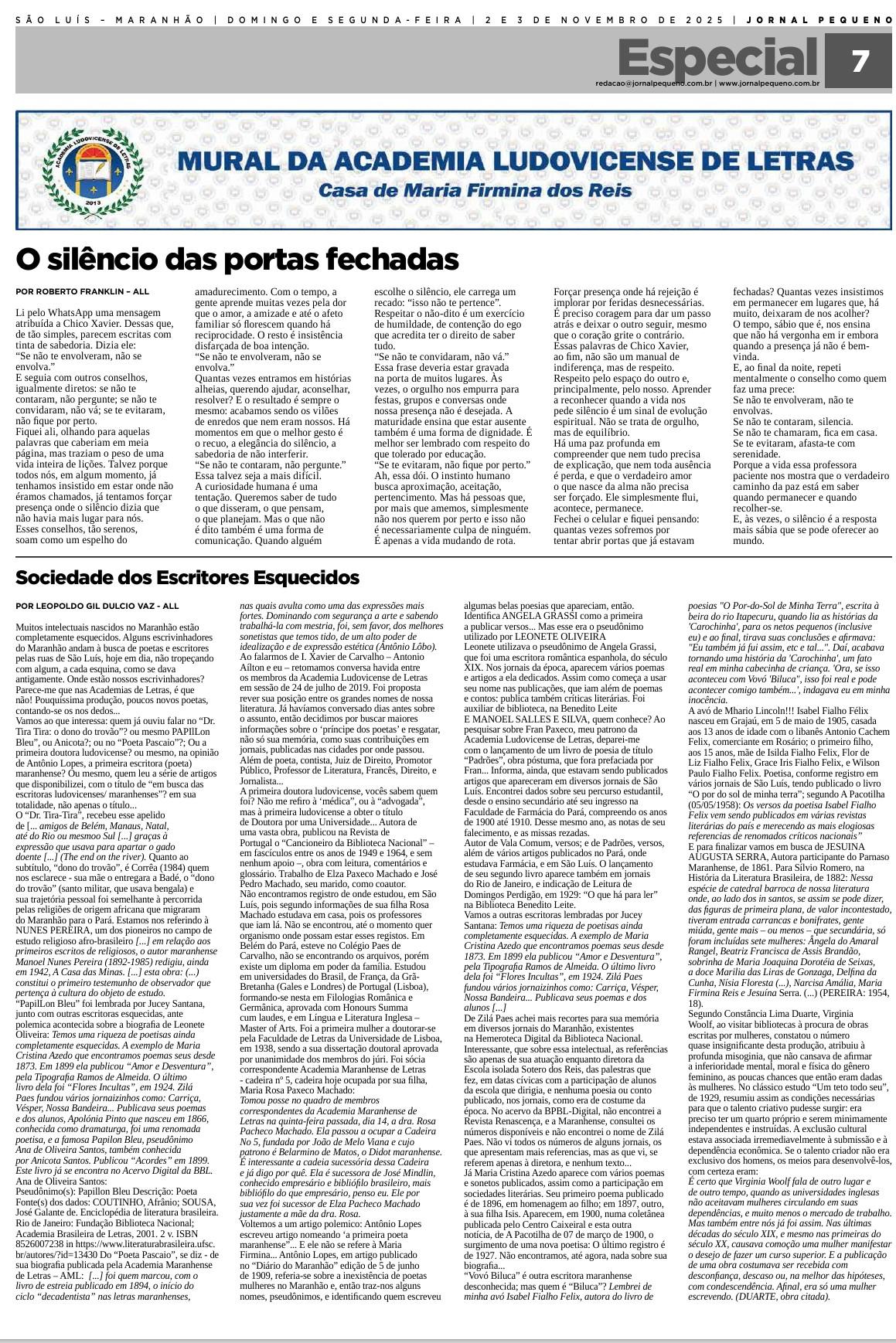 MURAL DA ACADEMIA LUDOCICENSE DE LETRAS – JORNAL PEQUENO DO LIVRO: O SEXTO SEXO *MHARIO LINCOLN - A QUEDA