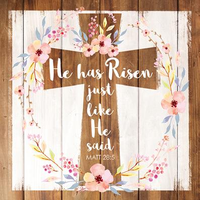 4 cards, 1 design. Bible verse on cover: Matthew 28:5. Greeting: ‘Happy Easter.’ Size:12.5x12.5cm
