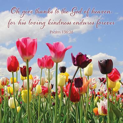 4 cards, 1 design. Bible verse on cover: Psalm 136:26. Blank inside for your own message. Size:12.5x12.5cm