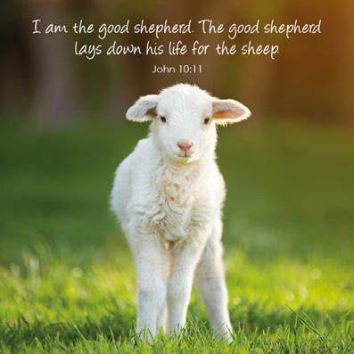 4 cards, 1 design. Bible verse on cover: John 10:11. Greeting: ‘With every blessing this Easter.’ Size: 12.5x12.5cm
