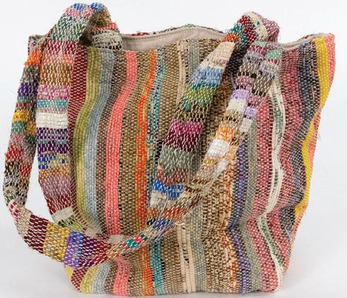 A heavy cotton, multi-coloured, beautifully handcrafted shoulder bag. Front zipped pocket and zipped inner, with adjustable straps. Handmade by artisans affected by leprosy and disabilities at New Sadle, Nepal. Strap length 150cm- can be shortened to 80cm length and width 4cm. Made from cotton.