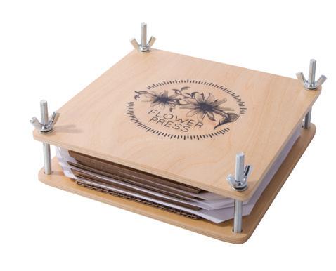 Classic Flower Press 13263 Press and preserve your favourite flowers! Made from sustainably sourced timber. Includes wooden press, 10 sheets of white pages, and 6 pieces of corrugated cardboard. 14.9 x 14.9cm