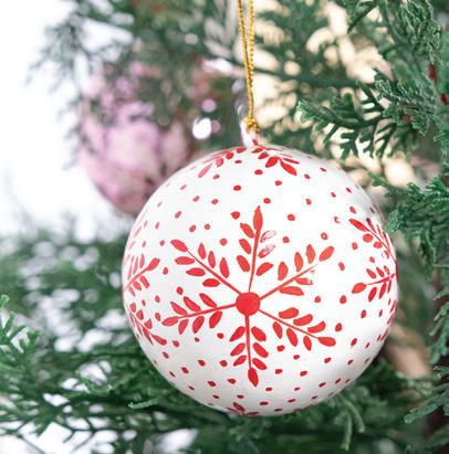 Let the snowflakes fall on your Christmas tree. This unique Fair trade bauble is a lovely red snowflake design. Handmade by artisans affected by leprosy and disability in India and made from paper mache material. A wonderful finishing touch to any Christmas tree. Size: 10cm diameter