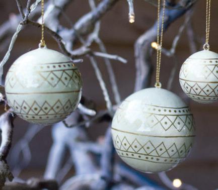 Handmade and handpainted in India by skilled artisans, this set of 3 papier mache baubles look lovely hung together on the Christmas tree, beautifully simple and contemporary. Handmade in India. Size of the three baubles vary. Approx 7.5cm diameter.