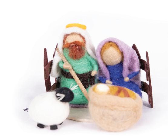 Our Felt Nativity Scene is a wonderful addition to any home. Handcrafted in Bangladesh, this adorable Christmas decoration features Mary, Joseph, a sheep and baby Jesus in the manger scene. A Fair Trade nativity scene that has been made with such detail and care. Gifts Set packaged: 13x 13cm. Largest figure 13cm x 6cm. Circle stand 10cm diameter