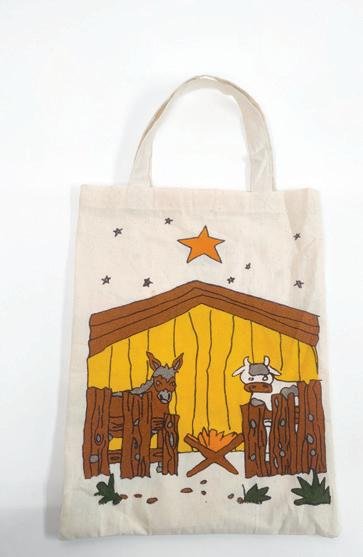 A cotton screen printed canvas bag containing 10 cotton figures that make up the Nativity Scene.