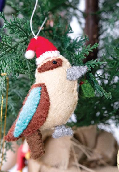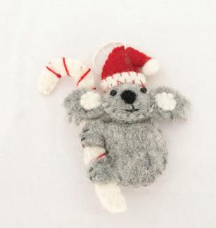 Super adorable set of 5 Australian animals decorated with Christmas hats, candy canes, presents, holly, stars and baubles. Each felt animal has exquisite attention to detail. Hand made from felt in Nepal by artisans affected by leprosy and disabilities. Size: 13 x 7cm.