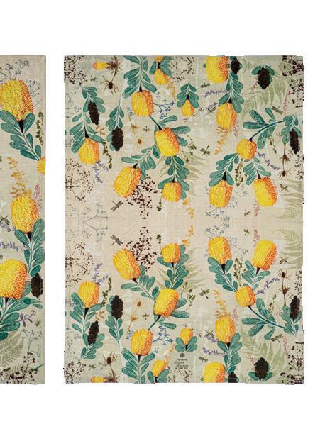 The Golden Banksia collection features a stunning banksia flower in an ambient, joyful setting. Australian artist Trudy Rice blends solar plate etching and monotype to create these original artworks.