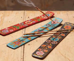 A pretty handpainted wooden incense stick holder. The colourful and uplifting floral design is an appealing decorative feature, worthy of display. Designs assorted. Handmade in India and selected for you at random. Incense stick not included.
