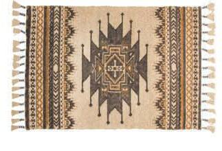 Cotton & Jute Printed Rug with Tassels 13175