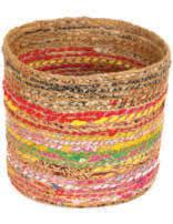 Handmade in Bangladesh through Fair Trade practices. A great use in your laundry, living room or bedroom! Upcycled from jute and recycled fabrics. Assorted colours chosen for you at random. Sizes: Large H:23 x D 24, Medium: H:20 x D20cm, Small: H:15 x D 16cm
