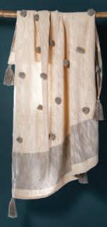 Fashionable throw with a soft cotton touch featuring cute pom poms hand stitched onto throw. 100% cotton. Wash on gentle cycle with like colours. Generously sized, it makes for a practical décor. Handmade in India. Size: 125 x 150cm