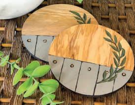 Modern coaster set creating a stylish protection for your surfaces. Featuring an olive branch design hand painted with acrylics and clear lacquer to preserve the colours. With inspiring words ‘we cultivate hope’. Handmade in Bethlehem using Olive Wood. Care: Wipe clean with a damp cloth. Size: 10 x 10 x 0.50cm