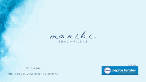 Maniki Beach Villas have been designed with me culous a en on to detail, crea ng homes with style, sophis ca on and warmth.