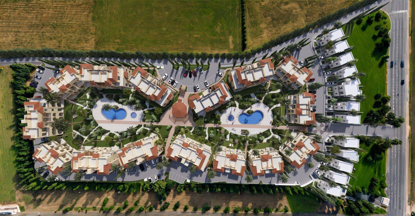 Apartments, penthouses and villas in landscaped gardens with lagoon-style communal swimming pools