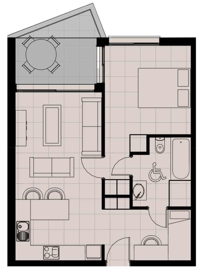 Open plan Living/Dining Room Kitchen Private allocated parking 1 Bedroom + Study Room 1 Bathroom