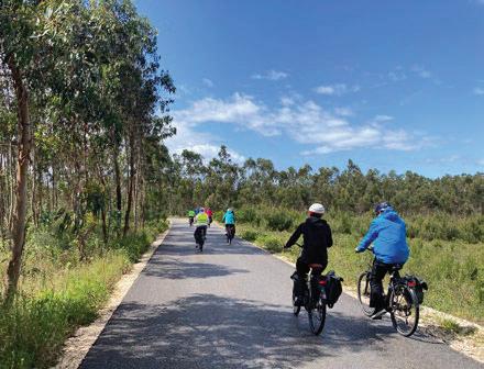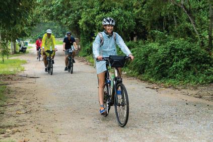 REISEUNTERLAGEN auf Wunsch die Belvelo-Trinkflasche, die Sie Wir weisen Sie darauf hin, dass Belvelo-Damit Sie sich intensiv und mit viel Vor-unterwegs immer wieder auffüllen lassen Reisen im Allgemeinen für Personen mit freude auf Ihre Belvelo-Reise vorbereiten können. eingeschränkter Mobilität nicht geeignet können, erhalten Sie mit den Reiseuntersind. Bitte sprechen Sie uns an, damit wir Sie lagen ausführliche Hintergrundinformatiounter Berücksichtigung Ihrer persönlichen nen, Reiseliteratur sowie auf Wunsch Ihre TEMPO Bedürfnisse individuell beraten können! persönliche Belvelo-Trinkflasche. Bei unseren Reisen steht das Erleben von Natur und Kultur im Vordergrund, nicht das Tempo oder die Jagd nach Rekorden. BesonNACHHALTIGKEIT SICHERHEIT ders schön an E-Bike-Reisen: Wenn es in Für uns nicht bloß ein Marketing-Trick, Die eingesetzten Räder entsprechen dem der Reisegruppe unterschiedliche körperlisondern Prinzip. Neben dem Wohlbefinden neusten technischen Stand und sind stets che Voraussetzungen gibt, spielt das E-Bike unserer Gäste haben wir auch stets das bestens gewartet. Eine ausführliche Ein-seinen großen Vorteil voll aus und sorgt Wohl unserer Umwelt und Mitmenschen weisung sorgt für einen intuitiv sicheren dafür, dass auch der Untrainierte mit der im Blick. So bestehen zum Beispiel die Umgang mit dem E-Bike und minimiert das Sportskanone im gleichen Tempo fährt und Innenseiten dieses Katalogs zu 100 % aus Unfallrisiko. Wir bitten Sie, für das Fahren auch noch Atem für einen Plausch bleibt! Recycling-Papier. Zertifiziert mit dem mit dem E-Bike Ihren eigenen Helm mitzuBlauen Engel. Abfall vermindern wir unter bringen. Sollten Sie keinen Fahrradhelm beanderem, indem wir Sie auf Wunsch mit der sitzen, geben Sie uns bitte Bescheid. Um auf TESTFAHRT wiederverwendbaren Belvelo-Trinkflasche unseren Reisen das höchstmögliche Maß Jeder, der radfahren kann, kommt in der Reausstatten, die Sie jederzeit wieder auffüllen an Sicherheit zu gewährleisten, empfehlen gel auch intuitiv mit einem E-Bike zurecht. (lassen) können. Last, but not least: Pro wir Ihnen ausdrücklich, einen Fahrradhelm Sie möchten auf Nummer sicher gehen? Reisegruppe spenden wir ein neues Fahrrad zu tragen. Dann machen wir Ihnen einen Vorschlag: für Schülerinnen und Schüler in ländlichen Mieten Sie bei Ihrem lokalen FahrradRegionen des südlichen Afrikas. Weitere Bitte berücksichtigen Sie, dass in einigen händler ein E-Bike, idealerweise von einem Informationen dazu finden Sie auf Seite 100. Ländern das Tragen eines Fahrradhelms Markenhersteller. Wenn Sie Feuer fangen Zudem arbeiten wir mit lokalen Partnern gesetzlich vorgeschrieben ist. und sich für eine Belvelo-Reise entscheiden, vor Ort zusammen, so dass ein Großteil verrechnen wir pro Reisegast pauschal 20 € des Reisepreises in den bereisten Ländern mit dem jeweiligen Reisepreis. Einfach bei ankommt. STRECKE der Buchung den E-Bike-Mietnachweis