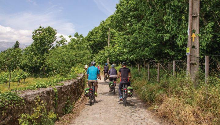 Reise und von Tag zu Tag. Grundsätzlich PANNE werden bei uns pro Fahrtag meist zwischen Auch zu Beginn jeder Reise nimmt sich Ihr Was, wenn es Sie erwischt? Wenn der 2 und 6 Stunden auf dem E-Bike zurückge- Reiseleiter gern Zeit, damit Sie sich ganz Reifen nur noch Pfffft macht und Ihr Rad legt. Bei der Auswahl der Rad-Strecken ach- in Ruhe mit Ihrem Rad vertraut machen unfreiwillig zum Stehen kommt? Erstens ist ten wir darauf, nur landschaftlich besonders können und Sattel- und Lenker-Eines dank der Unplattbar-Technologie der Rei-reizvolle Strecken per Rad zu befahren. Der stellungen perfekt auf Ihre Bedürfnisse fenhersteller sehr unwahrscheinlich, dass Untergrund ist meist asphaltiert und wenig abgestimmt sind. Sie verfügen über einen Ihr Rad einen Platten bekommt. Zweitens oder gar nicht von motorisierten Fahrzeugen eigenen Sattel, den Sie besonders gern sind der begleitende Fahrer und Ihr Reise- frequentiert, hin und wieder befahren wir nutzen? Kein Problem! Wenn dieser in leiter in der Lage, kleinere Pannen innerhalb auch Feld- und Kieswege, wenn die Passa- Ihrem Gepäck Platz findet, wird er Ihnen kurzer Zeit zu beheben. Und damit niemand gen attraktiv sind. Auf kurzen Streckenab- von unserem Team gern vor Ort montiert! auf Sie warten muss, führen wir in der Regel schnitten müssen Sie eventuell auch einmal Für alle anderen Gäste halten wir Sättel mit Ersatzräder mit, sodass Sie schnell um-schieben, werden dann aber mit besonders komfortabler Sitzfläche bereit. steigen können, während sich unser Team faszinierenden Wegen belohnt. um die Reparatur der kleinen oder größeren Panne kümmert.