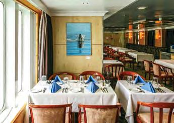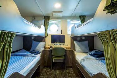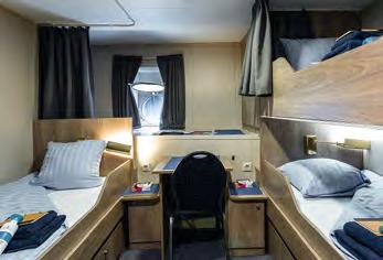 Für Ihr Wohlbefinden an Bord ist auch gesorgt: Auf dem Kabinendeck gibt es eine Sauna und einen Massageraum, auf dem Hauptdeck ein Fitness-Studio. Es gibt verschiedene Kabinenkategorien und Suiten, eine Sanitätsstation, einen Kiosk, eine Wäscherei, ein Nichtraucher-Restaurant, eine Lounge, eine Bar. Eine Kaffeeund Tee-Station ist 24 Stunden am Tag für alle Gäste kostenlos nutzbar.