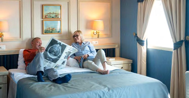 Auf stilvollen Boutique-Schiffen, modernen Yachten und in ausgewählten Hotels vor und nach Ihrer Kreuzfahrt erwarten Sie komfortable Kabinen und gemütliche Zimmer