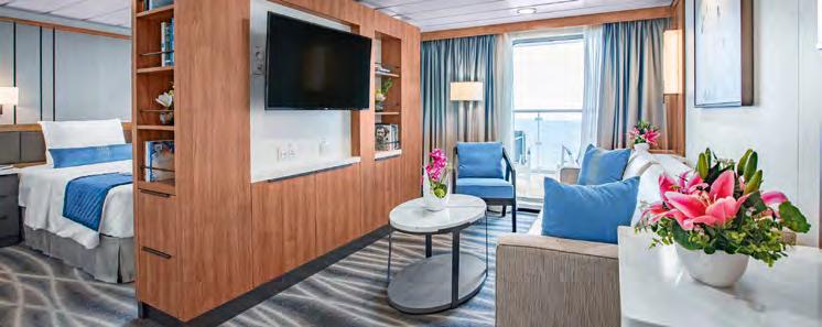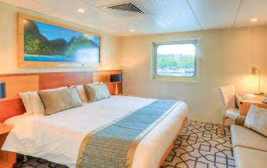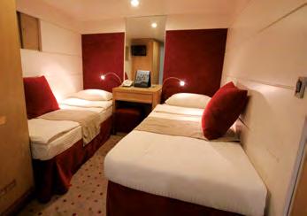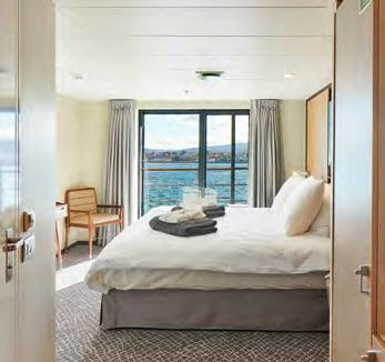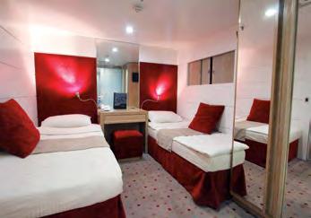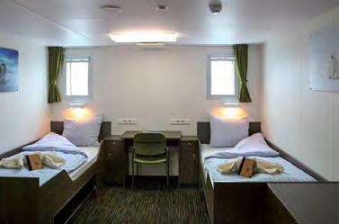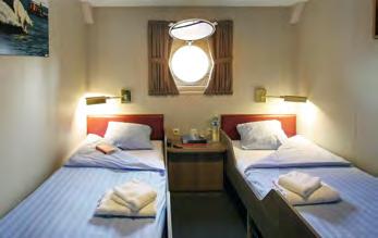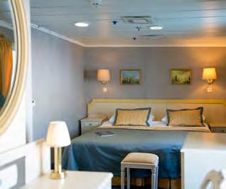 Die komfortablen 56 Nichtraucher-Kabinen und -Suiten sind ausgestattet mit Dusche/WC, Telefon, Safe, Minibar, einer individuell regulierbaren Klimaanlage,