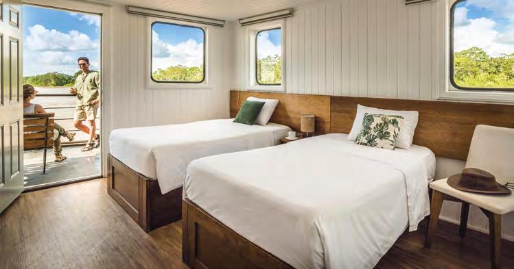 Darüber hinaus haben wir auch einige Klassiker-Reisen um zahllose Höhepunkte erweitert. Neue Abenteuer können Sie z. B. auf unseren Expeditionen im AmazonasRegenwald erleben. Auf dem mächtigen Mekong kreuzt unsere kleine Familie von Boutique-Schiffen laotisch leger durch Südostasien und freut sich auf baldigen Nachwuchs, denn – Ihnen können wir es ja verraten – hier planen wir den Bau eines ganz neuen Schiffs. Unsere Hausboot-Reise in Simbabwe ermöglicht Safaris auf dem Sambesi, per Postschiff kommen Sie zu den Paradiesen der Südsee und wer sich vom heimischen Europa verblüffen lassen möchte, findet Uriges und Unerwartetes auf unseren Fluss- und Kanal-Kreuzfahrten u. a. in Schweden, Schottland und Portugal.